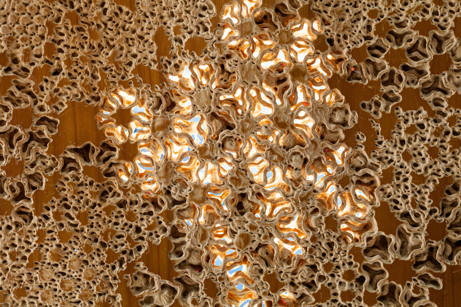 アーティストとロボットアームが同じ素材上で、癌細胞をモチーフとした彫刻を交互に施すプロジェクト。非言語的対話や、すれ違いから生じるエラーを通じて、協働の可能性と限界を見つめる。作品は単に物理的な彫刻としてだけでなく、制作過程そのものを含めた「対話の記録」として、AI やロボットと共存する社会における人間の役割、創造の意味を模索し、問い直す。