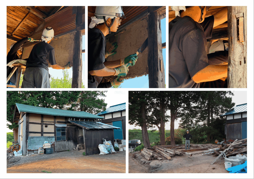 小屋の解体は、すでに友人や家族と一緒に進められています。最終的な形については、写真をPhotoshopでコラージュしながらスタディをしている段階です。建築とマテリアルの関係をソフトウェア上で変容させ、それを実現するということもプロジェクトのテーマです。