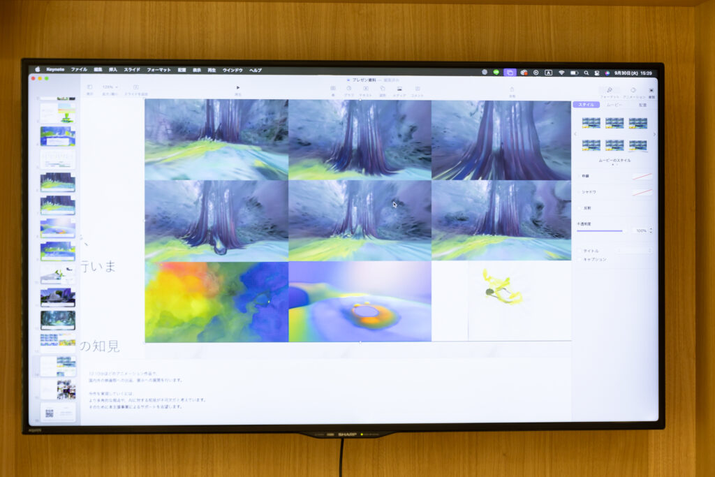 面談では他にAIに対する技術的なサポートや専門家へのアプローチについても話されましたが、最後に話題になったのは展示でのプレゼンテーションについてでした。山中さんは自身が芸術祭に参加した際、上映と違って作品の見て欲しいところを観客に見てもらえなかった経験について触れ、成果発表イベントでは展示としてどう見せるかに取り組みたいと述べます。それを受け若見さんは「四方八方に投影して風景につつまれる感じだと作風とマッチすると思います」と述べ、西川さんはそれに同意を示しつつ「映像を覗き込むような提示の仕方も面白いのではないか」と他のパターンも提案します。