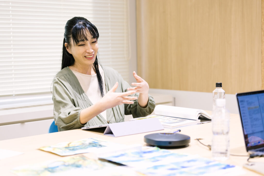 山中さんは自身の制作動機についてアドバイザーに説明します。